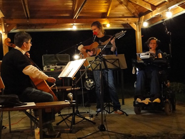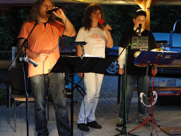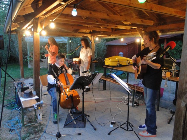 Ich hab nicht bei jedem Stück mitgespielt, zwischendurch hatte ich auch Pause. Dadurch war die Begleitung abwechslungsreicher. Elke, Jürgen und Sanne haben bei den meisten Liedern gesungen, einmal griff auch Elke zur Gitarre. Zwischendurch beeindruckte uns Sanne mit ihrem Können am Saxophon.