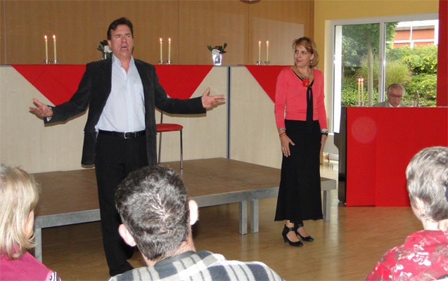 Nun wechselten sich Sopran- und Tenorarien jeweils unter Klavierbegleitung mit Klavierstücken ab. Die Zuhörer wurden dabei in die Welt der Kunstlieder und Arien aus Oper und Operette entführt. Ganz nebenbei erfuhren wir auch noch den Unterschied zwischen Oper und Operette. Ruxandra Voda van der Plas erklärte: „Während bei der Oper geliebt und gestorben wird, verzichtet die Operette auf das Sterben“.
