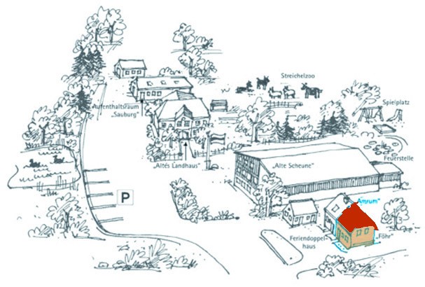 http://www.ferienhof-lamp.de/, unsere Unterkunft, schreiben. Der Ferienhof war früher ein "echter" Bauernhof mit Pferden, Kühen, Schweinen und vielen anderen Tieren, der von den Großeltern und deren Vorfahren des heutigen Besitzers Henning Lamp bewirtschaftet wurde. Dieser baute den Bauernhof zu einem barrierefreien Ferienhof um. Somit gibt es verschiedene Gebäude auf dem 14.000 m² großen Naturgelände am Ortsrand von Wendtorf.