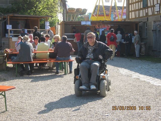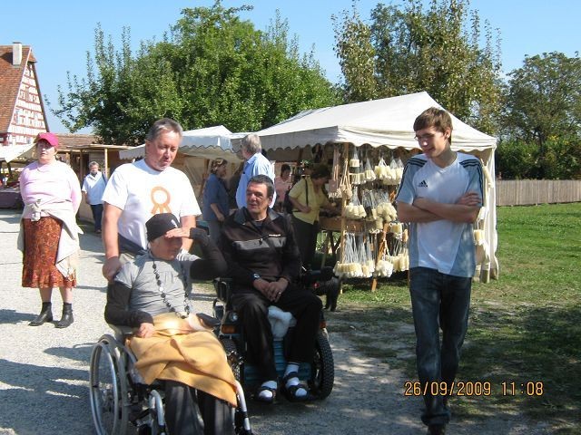 Mit dem hauseigenen Bus des Eduard Knoll Wohnzentrums fuhren fünf Bewohner und drei Begleitpersonen zum Backofenfest in das Freilichtmuseum Wackershofen.