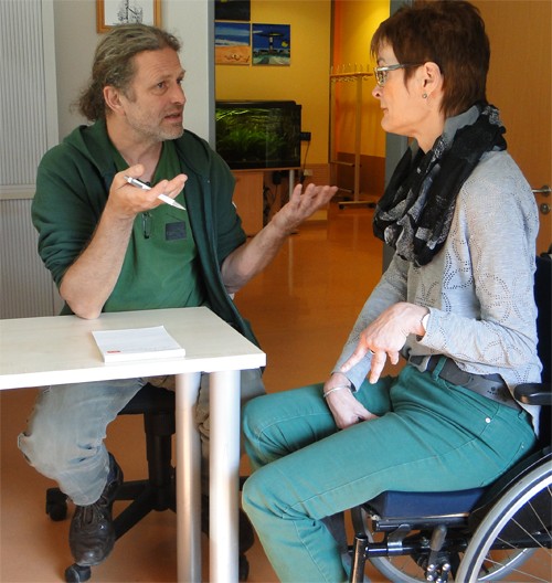 Voller Tatendrang trafen wir uns am darauffolgenden Mittwoch den 9. März wieder an derselben Stelle auf gleicher Welle. Nach einer Nacht, in der uns so einiges durch den Kopf gegangen war, hatten wir ja genug Input, um alles umzusetzen. Wir besprachen gerade unsere weitere Vorgehensweise, als die Türe aufging und Norman Weyrosta, unser Geschäftsführer, mit der Landtagskandidatin Catherine Kern von den Grünen eintraten.Catherine Kern Bei ihrem Besuch in unserem Haus wollte sie mal mitbekommen, wie wir in unserer Radiogruppe so arbeiten. Natürlich wurde auch über verschiedene politischhttps Themen gesprochen, immerhin sind am Sonntag die Landtagswahlen in BW. Aber jetzt zurück zu uns. Nach einer kleinen Kaffeepause in der wir unsere Gedanken sammelten und uns wieder auf unseren „Mond“ konzentrierten, trennten wir uns wieder, um an unsern Beiträgen weiter zu „basteln“.