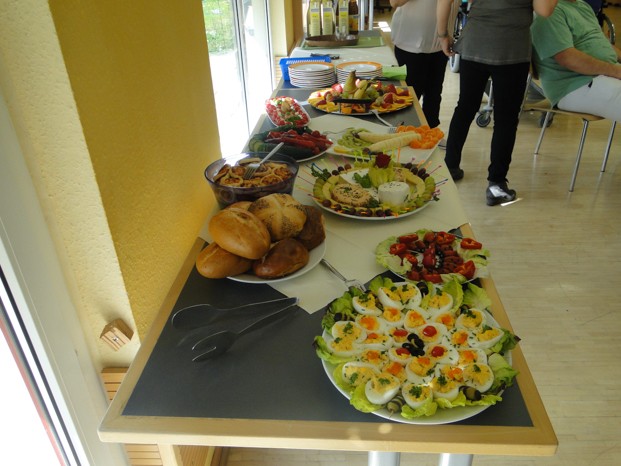 Als dann die ersten Köstlichkeiten verspeist waren. Wurde noch einmal für Ruhe im ganzen Raum gesorgt. Jetzt sprach Jutta als Bewohnervertreterin noch einige Dankesworte und überreichte die Abschiedsgeschenke.