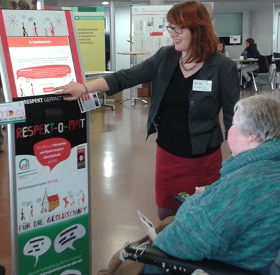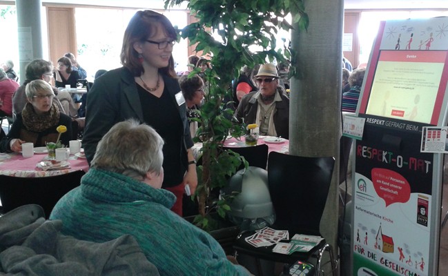 Mich hat dieser Automat sehr beeindruckt, weil er sich mit dem Thema Respekt beschäftigt und ich finde, Respekt ist für das menschliche Zusammenleben sehr wichtig. Ich fände es sehr gut, wenn wir, das Wohnzentrum in Krautheim, dieses Gerät einmal ausleihen würden. Schade, dass ich als Rollstuhlfahrerin dieses Gerät nicht selber bedienen konnte, aber ich habe diese Anregung an die Mitarbeiterin weiter gegeben.
