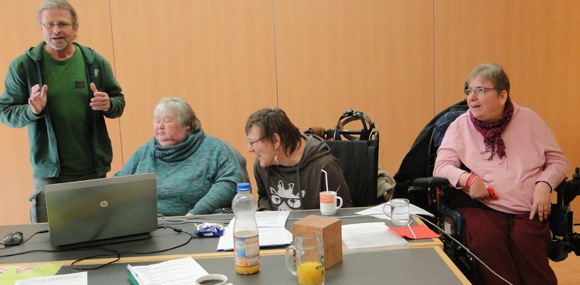 Mit Hilfe von Wolf Sternberg schafften wir unser Ziel, nach Möglichkeit die Textbeiträge zum Thema und die Moderationstexte fertig zu stellen. Wir teilten uns wieder in kleinere Gruppen auf, mussten uns aber ganz schön ranhalten, damit jede Gruppe den anderen etwas vorzeigen konnte.