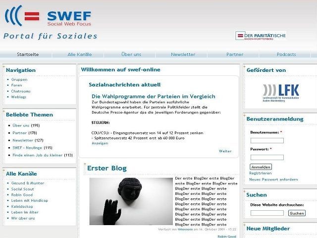 Bei dem SWEF-Portal handelt es sich um eine Online-Community, die vom Paritätischen entwickelt wurde, um Menschen von verschiedener sozialen Einrichtungen und Diensten zu vernetzen. Um das Portal nutzen zu können, ist eine Anmeldung als Benutzer erforderlich. Die Möglichkeiten in dem Portal stehen dem sämtlicher anderer Online-Communities in nichts nach. Benutzer können im Forum Beiträge veröffentlichen, ein Profil anlegen und dieses mit Bilder gestalten, (Interessens-) Gruppen beitreten und mit anderen Nutzern chatten.