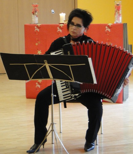 Das erste Stück war „Air“ von Johann Sebastian Bach, es wurde mit Akkordeon und Geige vorgetragen. Diese beiden Instrumente zusammen, wie soll das gehen, fragte man sich. Die Antwort ist, ja es ging, sogar sehr gut. Die Hörer wurden mit einem ungewohnten aber schönen Klang überrascht, auch zusammen mit der Tenorstimme sogar bei einem Stück wie dem „Agnus Dei“ von Georges Bizet.