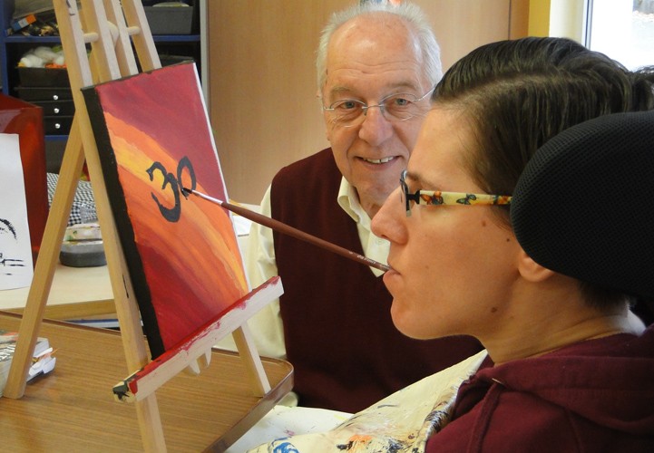 Wegen meiner fortschreitenden Erkrankung musste ich mit achtzehn in eine Pflegeeinrichtung umziehen. Dort bekam ich im Januar 2012 die Chance, mit dem Mundmalen anzufangen.