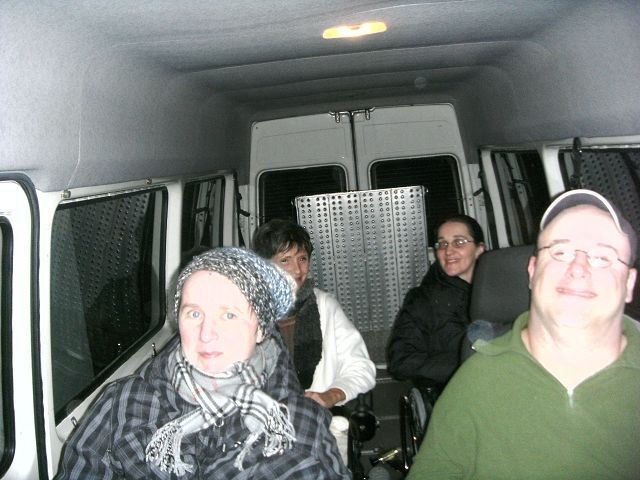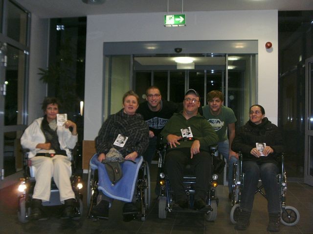 Gestern Abend fuhren vier Bewohner des Eduard-Knoll-Wohnzentrums und zwei Zivis –Steffen Vetter, Bärbel Hebert, Simone Krieg, Ruth Mittnacht, Daniel Grombach und Thomas Walz- zu einer Kabarettaufführung in Gaisbach bei der Akademie Würth.