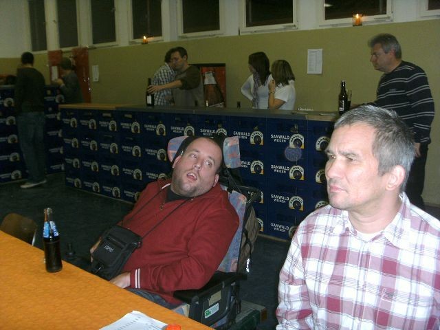 Am Samstagabend fuhren wir nach Gommersdorf zum Kerwe-Tanz. Unser Ex-Zivi Sebastian Hettinger lud uns ein. Unter dem Bandnamen „Alarmstufe Rot“ stellten sich glaube ich einige von uns etwas anderes vor. Als Sebastian in einer Lederhose und einem karierten Hemd erschien, fiel schon so manchem die Kinnlade runter.