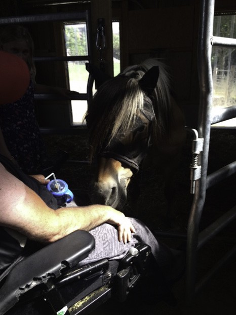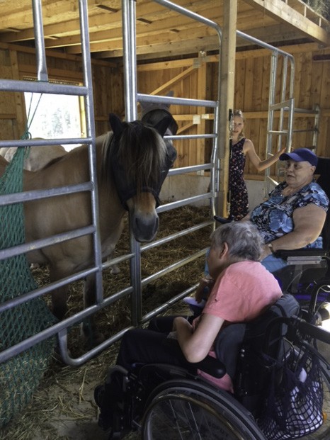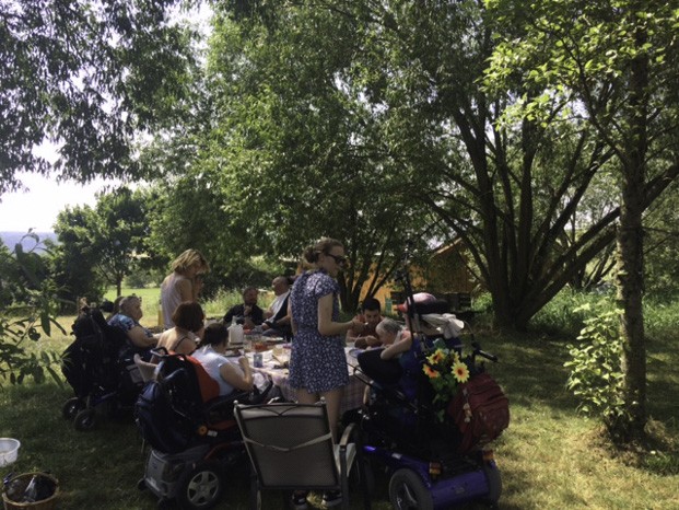Gemütlich ließen wir im Schatten der Obstbäume den schönen Nachmittag ausklingen. Bevor wir nach Hause fuhren, führte uns Friederike noch zu den beiden Pferden der Familie, da sie wusste, dass einige von uns große Pferdeliebhaber sind.