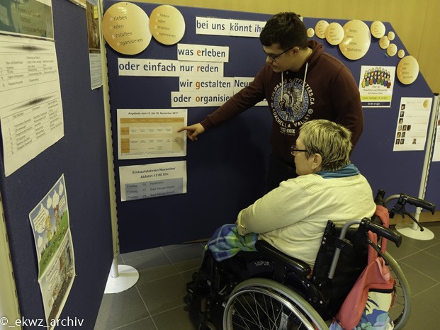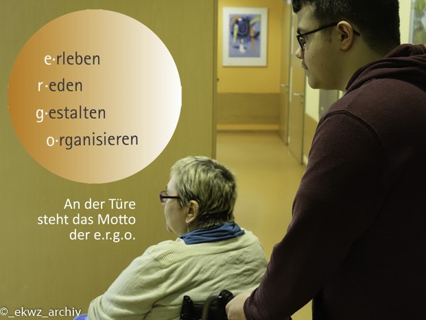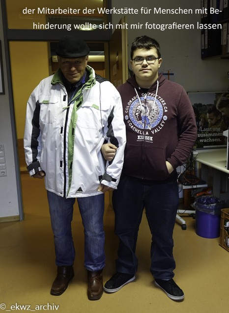 Manuel ein Mitarbeiter der ergo hat mit mir zusammen eine Bewohnerin in die Werkstätte für Menschen mit Behinderung in den Förderbereich gebracht. Und dann hat er mir noch einiges über die einzelnen Abteilungen in der Werkstätte erklärt.