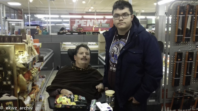 Ab 13:00 Uhr stand Einkaufen in Krautheim auf dem Plan. Zuerst haben wir den Bewohnern geholfen beim Anziehen ihrer Jacken, Ponchos, Mützen und Schals. Viele Bewohner brauchen wegen ihrer körperlichen Einschränkungen Unterstützung. Um 14:00 Uhr machten wir uns auf den Weg in einen Discounter. Dort kauften sich die Leute Kleinigkeiten wie Zahnpasta, Kaffee oder Chips. Gemeinsam sind wir in´s Wohnzentrum zurückgelaufen. Dort haben manche gespielt oder einfach nur geredet.