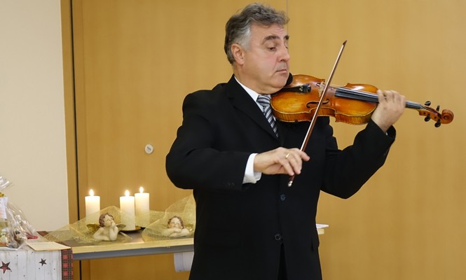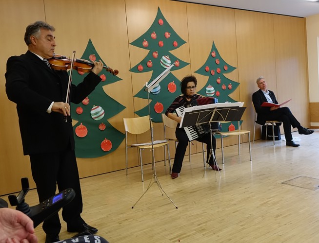 Als sich Jürgen Milewski von der Bewohnervertretung bei SMS für die Einladung bedankte, wurde es allmählich still im Raum. Bei der Begrüßung stellte Jürgen Milewski die 3 Musiker vor, die auch schon im vergangenen Jahr bei uns im Haus ein Konzert gaben.