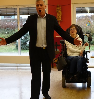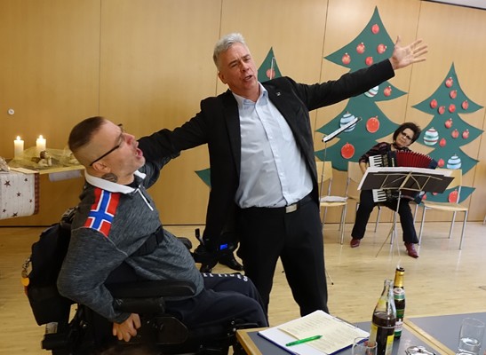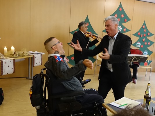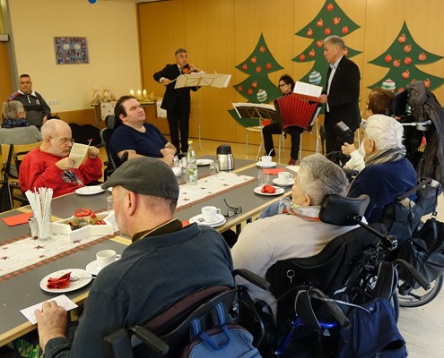 Nach viel Applaus und Bravo-Rufen folgte ein weihnachtliches Potpourrie mit vielen bekannten Liedern zum Mitsingen. Selbst Bewohner, die sonst eher keine Weihnachtslieder singen würden, ließen sich zum Mitsingen anregen.