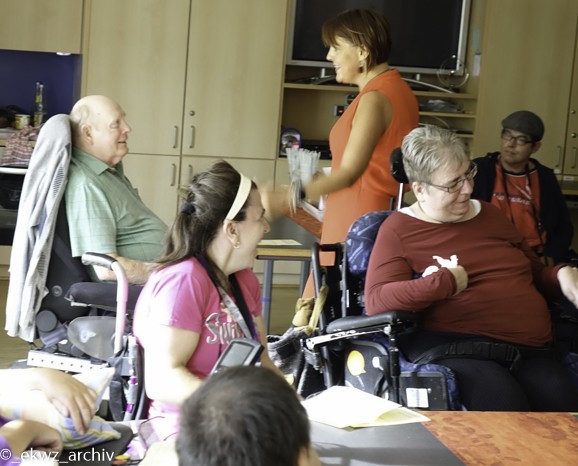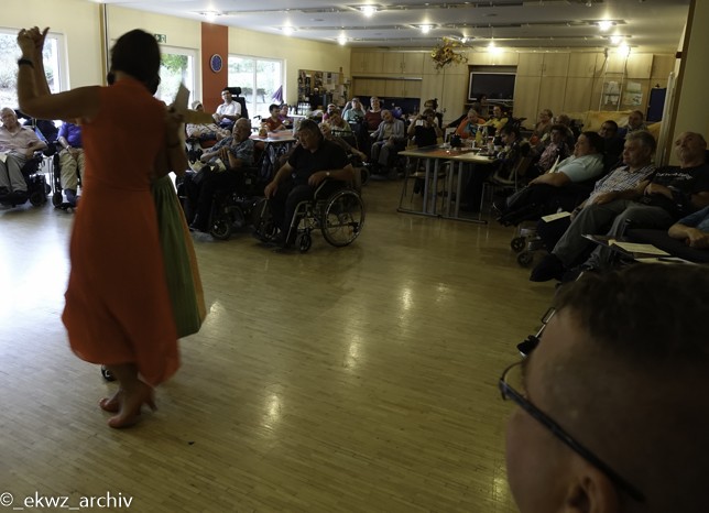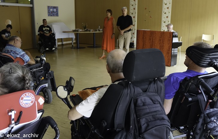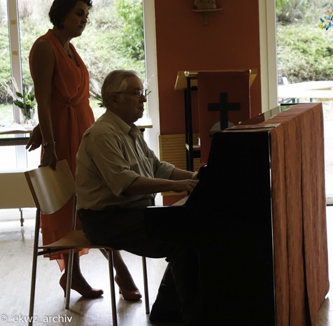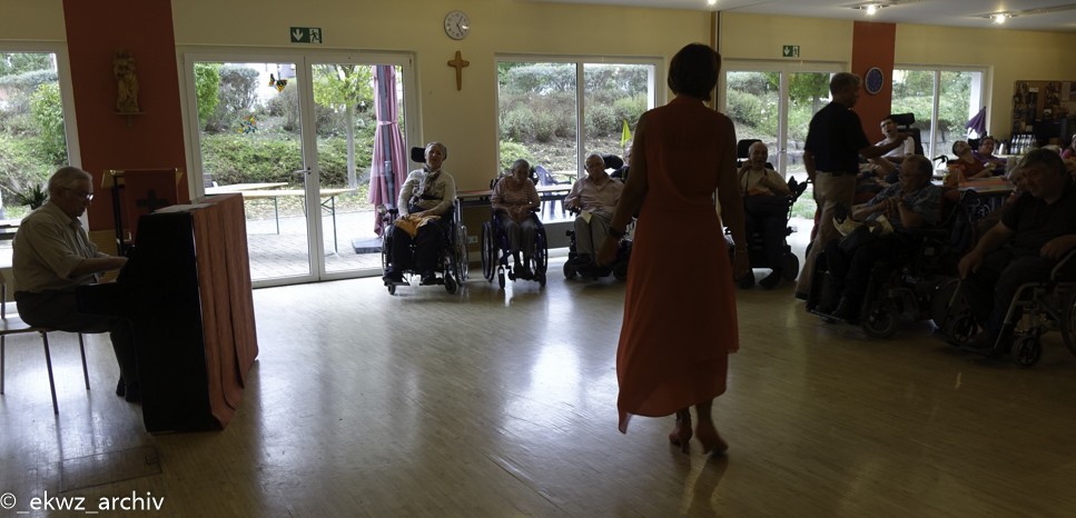 Am Freitagnachmittag, dem 21. September 2018 bekamen die Bewohner des Eduard-Knoll-Wohnzentrums verträumte Augen. Zu uns kamen die Sopranistin Ruxandra van der Plas-Voda, der Tenor Harrie van der Plas und der Pianist Kurt Weiler. Bewohner und Künstler begrüßten sich herzlich, denn 2015 waren die drei genau in dieser Besetzung schon einmal bei uns im Haus. Damals hatten noch viele Bewohner Vorbehalte gegenüber einem klassischen Konzert. In Erinnerung ist aber geblieben, dass Klassik sogar Spaß machen kann.