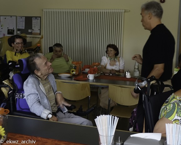 Noch einmal erklang ein herzlicher Applaus. Musiker und Bewohner tauschten sich in kleinen Gesprächen noch miteinander aus. Leider mussten sich die Musiker dieses Mal aus Zeitgründen ohne gemeinsames Abendessen verabschieden. Aber nicht ohne zu versprechen, im nächsten Jahr wieder zu kommen.