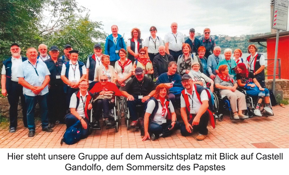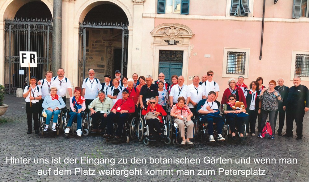 Alle drei Jahre veranstalten die Malteser eine Reise nach Rom. Die Teilnehmer der letzten Reise wurden angeschrieben und gefragt, ob sie wieder an einer Reise zur ewigen Stadt Interesse hätten. Als ich den Brief gelesen habe, habe ich gleich gedacht:“ Diese Pilgerreise sollte ich wieder mitmachen, wann kommt man sonst schließlich einmal nach Rom“. Also habe ich mich angemeldet und daraufhin kam eine Mitarbeiterin der Malteser aus Tauberbischofsheim zu mir nach Krautheim, um mit mir über die Reise zu sprechen. Alle meine Bedenken, was den Umgang mit meinem Schieberollstuhl und auch die nötige Pflege betraf, konnten im Gespräch ausgeräumt werden. Jetzt stand meiner Vorfreude nichts mehr im Weg, schließlich sollte es schon in zwei Wochen losgehen.