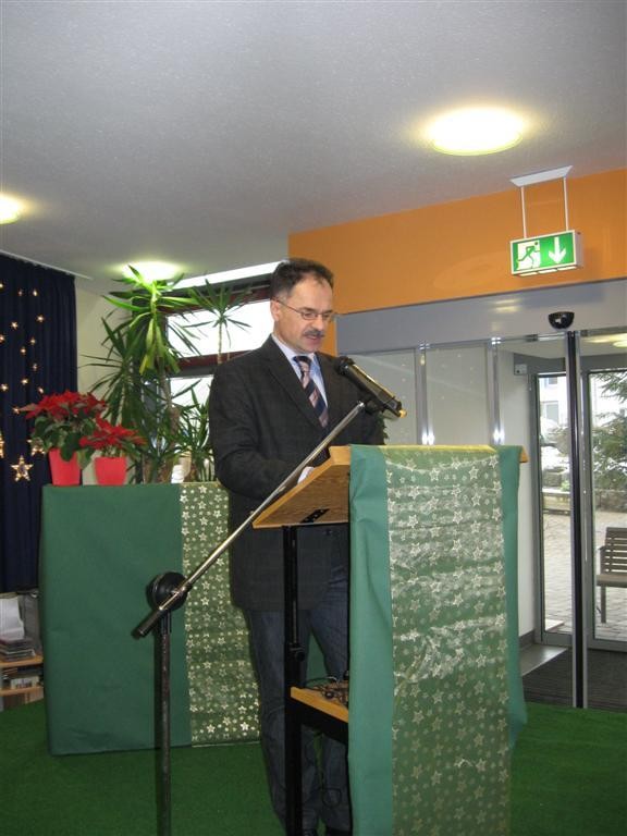 Im Festlich geschmückten Ergoraum fand man sich zusammen um zu feiern und Rückschau zu halten aufs fast vergangene Jahr 2008. Nach der Begrüßung durch Biggi trat Norman Weyrosta ans Mikro um eine beeindruckende Rede zu halten: Einige Leitsätze: Leider blieb es beim öffentlichen Nahverkehr im Hohenlohekreis bis heute nur bei Lippenbekenntnissen, aber wir bleiben am Ball, versprochen. Ein weiteres Ziel wurde angesprochen: neue Plätze für Betreutes Wohnen zu schaffen.