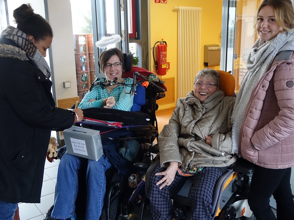 Mit zwei Mitarbeiterinnen tüftelte ich noch die Vollendung meines Planes aus, gemeinsam bastelten wir die Wunschbox für meinen Rollstuhl.