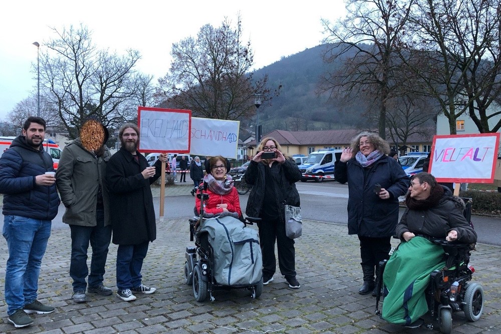 Auch 2 Bewohner und 5 Mitarbeiter vom Eduard Knoll Wohnzentrum waren mit dabei. Als ich gefragt wurde, ob ich dabei sein möchte, habe ich ganz spontan zugesagt. Ich habe mich gefreut, endlich einmal ein klares Zeichen für unsere Demokratie zu setzen, die wir uns nicht von rechten Parteien und Gruppierungen wegnehmen lassen dürfen. Als ich gefragt wurde, ob ich noch andere Bewohner weiß, die daran teilnehmen würden, fiel mir spontan noch eine weitere Bewohnerin ein, die dann auch mitging.
