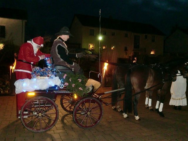 Es war schon leicht dunkel und viele Bewohner hatten sich auf dem Vorplatz des Wohnzentrums eingefunden, als eine Kutsche mit der Hauptperson des Abends, dem Nikolaus, samt Knecht Ruprecht und einem Engel, vorfuhr.