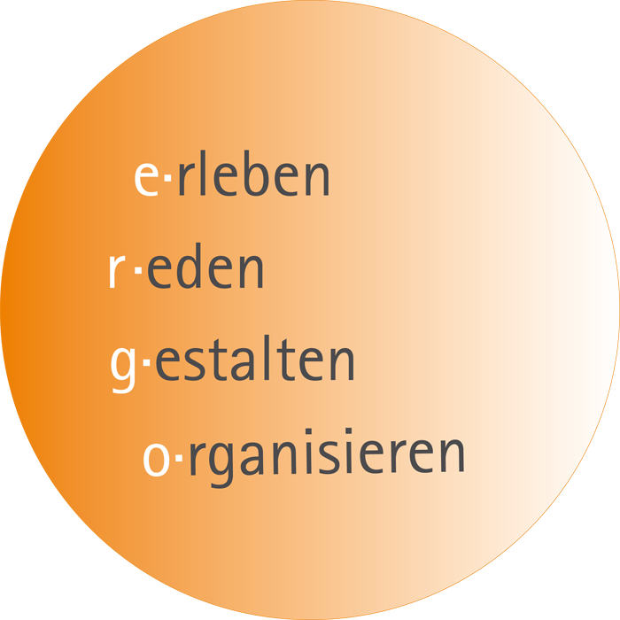 Der Bereich der Tagesstrukturierung heißt bei uns im Eduard Knoll Wohnzentrum schon seit ewigen Zeiten ergo. Vor einigen Jahren kamen wir auf die Idee, für „unsere ergo“ einen neuen treffenden Namen zu finden. Dafür konnten wir viele kreative Vorschläge sammeln. Knollis Kreativkammer, rolling room, Oase, Herzstück, Lichtpunkt, i-Tüpfelchen oder dolce vita, um nur einige zu nennen. Doch letzten Endes haben sich vier Begriffe, die als Anfangsbuchstabe die vier Buchstaben des Wortes e.r.g.o. haben, als am treffendsten herausgestellt. So entstand das neue Logo mit den Begriffen erleben, reden, gestalten organisieren.