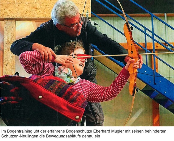 Bei dem inklusiven Bogensport-Projekt geht es nicht um klassisches Sportbogenschießen,sondern um den intuitiven Zugang zum Bogenschießen, der laut Trainer Eberhard Mugler Konzentration,Achtsamkeit und Körpergefühl fördern kann. In den kommenden zwei Jahren sollen Erfahrungen gesammelt werden, wie der Bogensport für Menschen mit unterschiedlichen Behinde rungsgraden erfahrbargemacht werden kann. Unterstützt wird das
