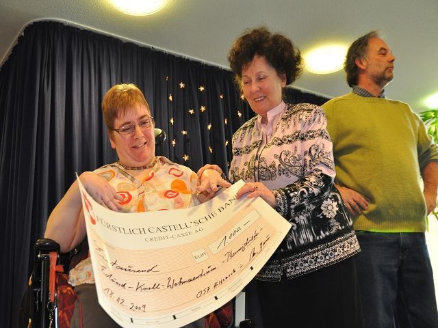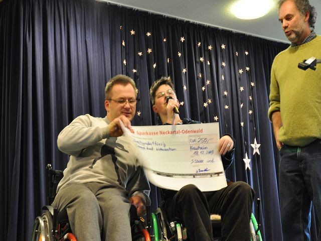 Wie schon mehrmals zuvor, überreichten auch an dieser Weihnachtsfeier Margarete und Hans-Joachim Bauer von der Krautheimer Apotheke einen Scheck über 1.000 EUR im Namen des „ordre de saint-fortunate“. Einen weiteren Scheck überreichten die Bewohner Sabine Schüll und Andreas Brandenburger. Sie sammelten durch einen Flohmarktverkauf 250 EUR. Wir danken beiden Spendern für ihren Einsatz, denn durch solche finanzielle Unterstützungen, sind besondere Dinge möglich, die ansonsten nicht realisierbar wären.