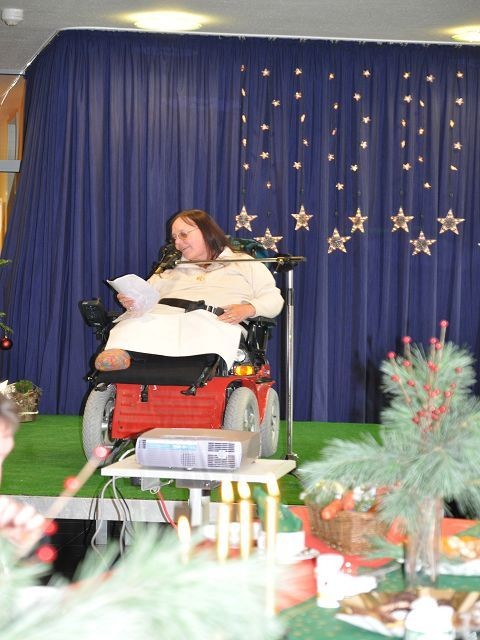 Nun ließ Hans-Jürgen Heckmann, Bewohner der Einrichtung, durch Ute Kemmer, Leiterin der Tagesstrukturierung, seine Weihnachtsgeschichte „Nicht ist immer alles so, wie es scheint“ vortragen.