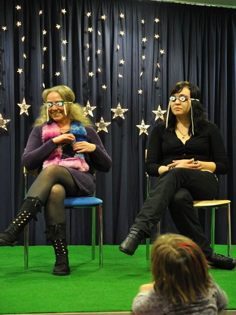 Unsere Jury, Elisabeth Philipp und Monika Hergenröther trugen mit Polizeimütze und Kelle angetan zu einem geregelten Ablauf der verschiedenen Quizspielrunden bei.