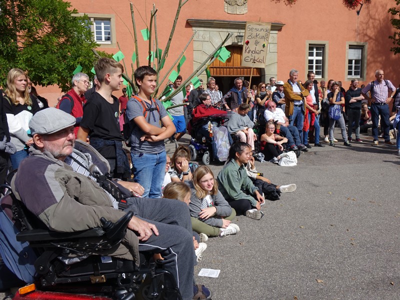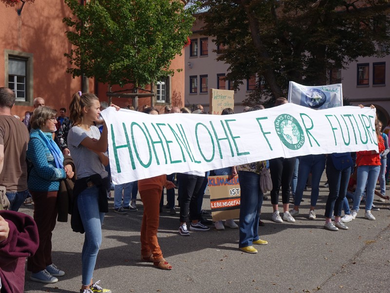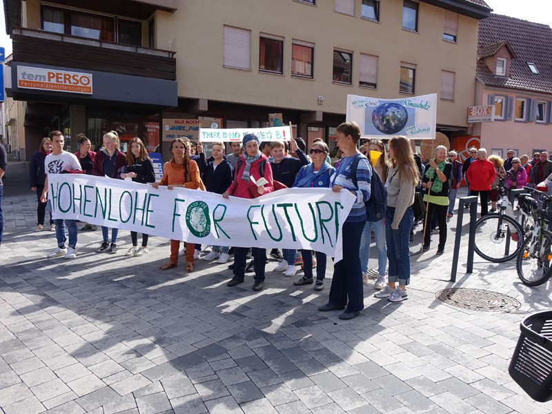 Gegen Mittag ging es am 20. September mit dem Bus auf nach Künzelsau. Die Fahrt nutzten wir, um uns darüber auszutauschen, warum wir es wichtig finden an der Demo teilzunehmen. Für Uwe und Reinhold steht im Vordergrund, auf die Problematik, die zum Klimawandel führt, aufmerksam zu machen. Carmen sagt: „Ich möchte durch meine Teilnahme darauf ausmerksam machen, dass etwas verändert werden muss und jeder seinen Beitrag leisten kann. Dass jeder Einzelne bei sich anfangen kann und wir gemeinsam durch kleine Veränderungen Großes bewirken können“. Johanna, die zur Generation Großeltern gehört, möchte:" mit meiner Teilnahme der jungen Generation, die das jetzt in die Hand nimmt, meinen Respekt zeigen“. Für Sabrina steht im Vordergrund: „Den Respekt vor der Natur wieder zu gewinnen ist wichtig für uns alle und sie für das zu schätzen, was sie uns gibt“.