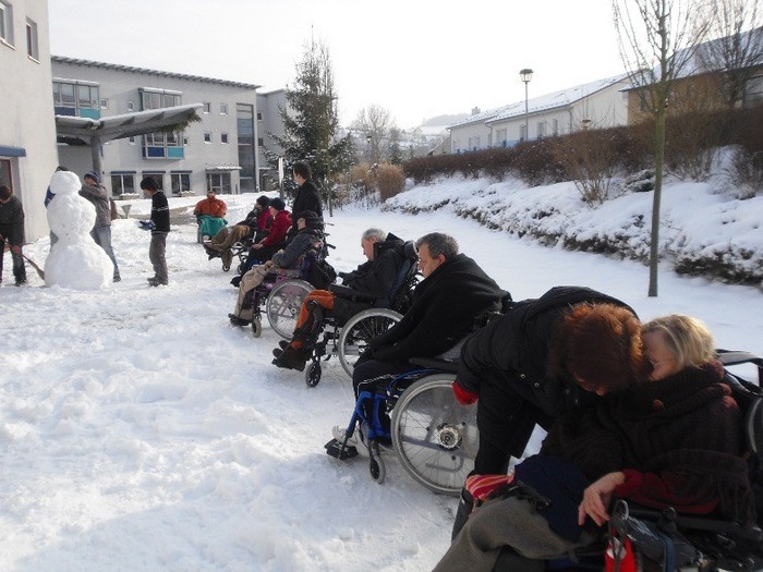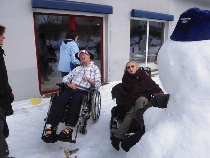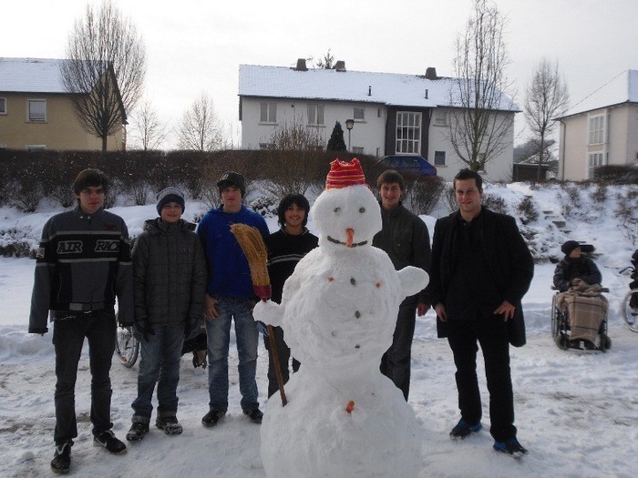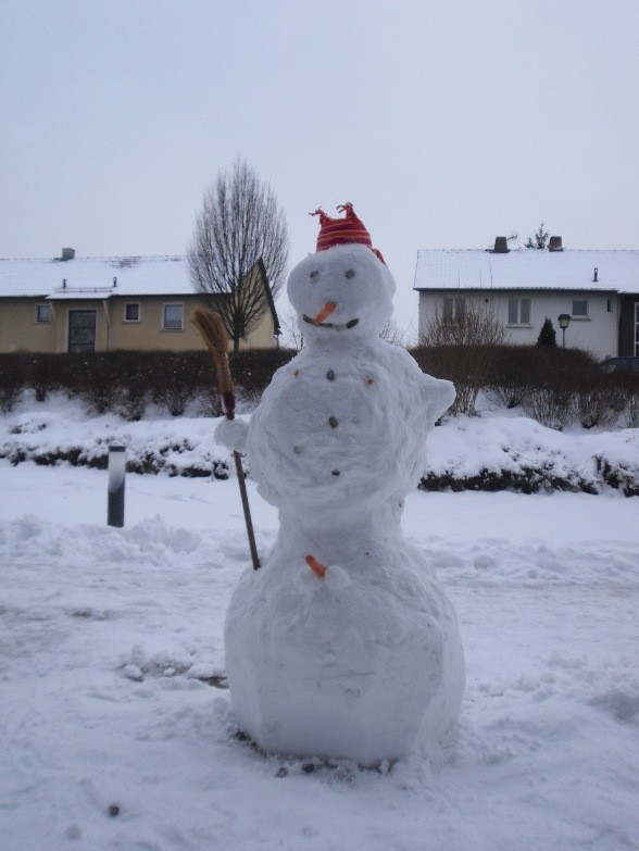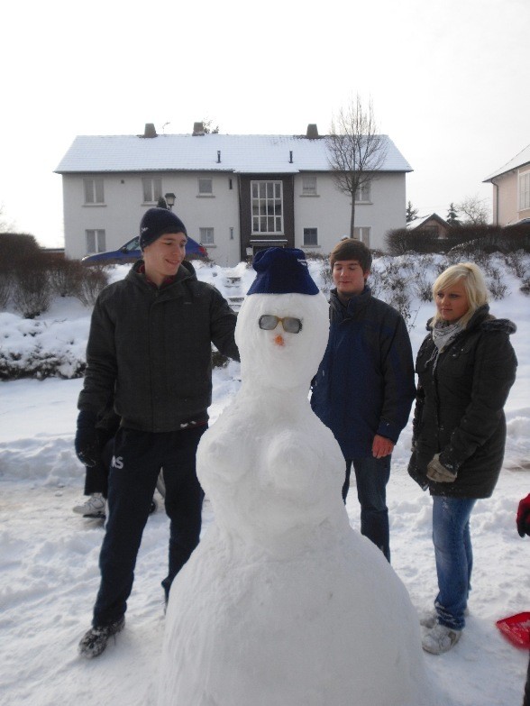 Augenzeugen haben beobachtet, wie der Schneemann und die Schneefrau von Schülern der Realschule Krautheim im Rahmen ihres TOP-SE - Projektes mit Unterstützung von Mitarbeitern und Bewohnern des Wohnzentrums erstellt wurden. Sie schaufelten den umliegenden Schnee zusammen, schütteten ihn aufeinander und formten ihn zu einem schönen Schneemann-Paar.