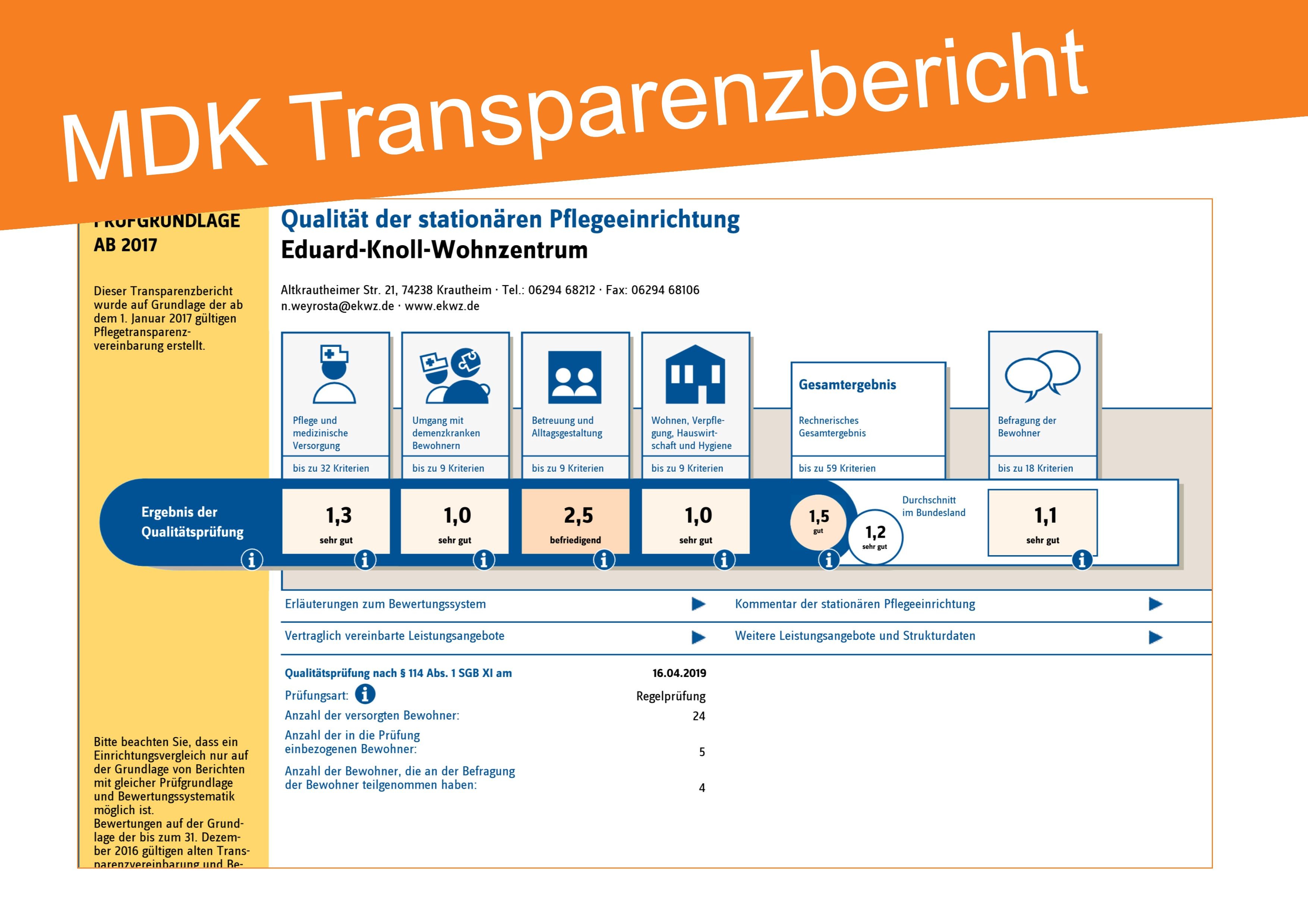 Im April 2019 waren Mitarbeiter des Medizinischen Dienstes der Krankenversicherung (MDK) im Wohnzentrum zur Prüfung der Qualität der Einrichtung.Der...