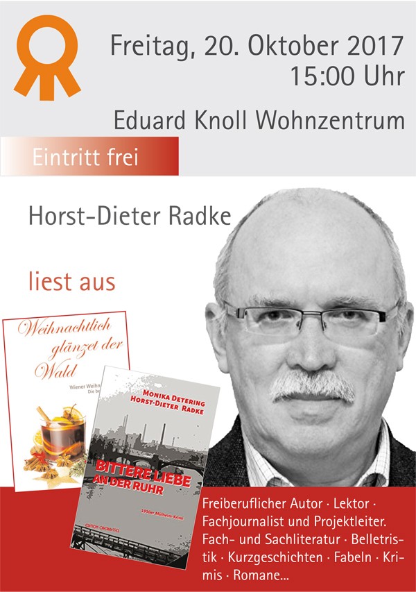 Am 20. Oktober 2017 um 15:00 Uhr, kommt der Autor Horst-Dieter Radke, zu einer Buchlesung zu uns ins Haus. Im Besprechungsraum des Eduard-Knoll-Wohnze...