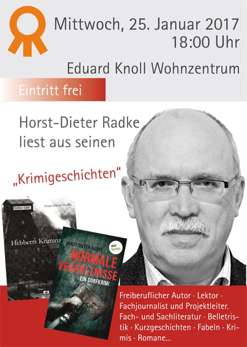 Am 25. Januar 2017 um 18:00 Uhr, kommt der Autor Horst-Dieter Radke, zu einer Buchlesung zu uns ins Wohnzentrum. Im Raum der e.r.g.o. wird Herr R...