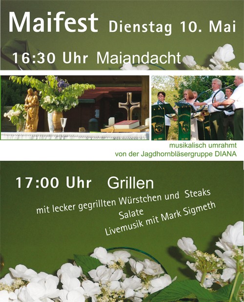 Am Dienstag den 10. Mai, wollen wir den Mai mit einem Maifest begrüßen. Wir beginnen mit einer Maiandacht um 16:30 Uhr. Dieses Jahr hat si...