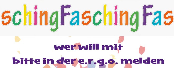 Für alle feierwütigen Faschingsfreunde haben wir uns ein paar Highlights ausgedacht. Bitte meldet Euch in der ergo für diese Veranstalt...