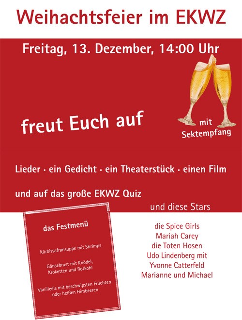 Liebe Homepagebesucher, auch im EKWZ ist schon Weihnachtsstimmung entstanden. Schuld daran sind die Weihnachtswichtel, die wir in diesem Jahr end...