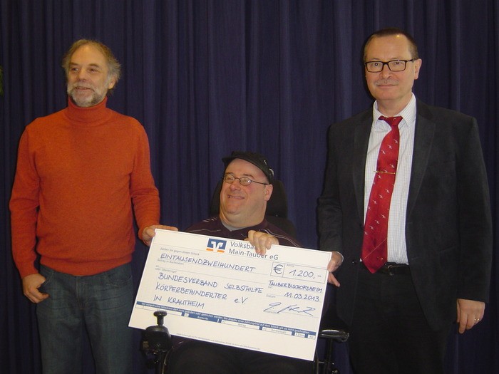Dr. Frank Beck, Geschäftsführer der AMS GmbH überreichte am 12. März 2013 einen Scheck an Norman Weyrosta, Geschäftsführ...