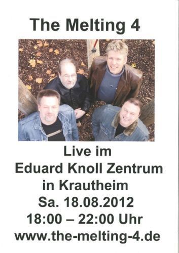 Am 18. August 2012, von 18-22 Uhr, spielt die Band „The Melting 4“ zum wiederholten Mal ein open air Konzert hinter dem Eduard-Knoll-Wohnz...