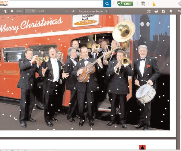 John Arthy ist sofort gefangen vom unvergleichlichen Sound dieser Epoche, die von Größen wie George Gershwin, Irving Berlin und Cole Porter geprägt wurde. Somit beschert das Pasadena Roof Orchestra seit über 40 Jahren seinen Zuschauern weltweit beschwingte und mitreisende Stunden. Das Ensemble spielt nicht nur Musik zu dem Film „Comedian Harmonists“ und stand mit Weltstar Robbie Williams auf der Bühne. Auch auf der Weihnachtsparty der Queen durfte 2010 ihr Sound nicht fehlen. Well, of course! Dieses Jahr sind sie mit ihrem Weihnachtskonzert bei uns zu Gast und stimmen uns mit internationalen Weihnachts- und Winterliedern auf die Vorweihnachtzeit ein.