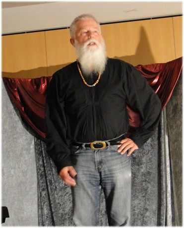 Dies ist eine Veranstaltung der VHS Künzelsau hier im Eduard-Knoll-Wohnzentrum dargeboten von dem Märchenerzähler Amos Ruwwe.