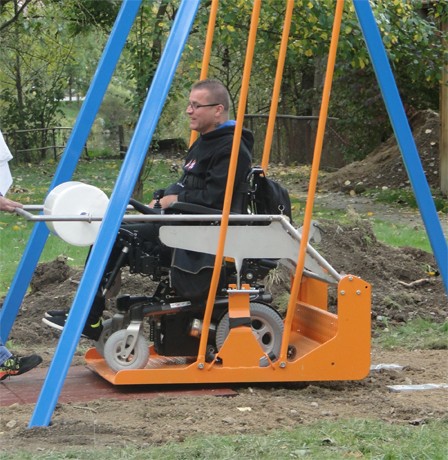 Einweihung der Rollstuhlschaukel werden Herr Dr. Neth Landrat des Hohenlohe Kreises