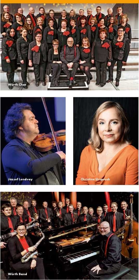 Die besinnliche Adventszeit wird in diesem Jahr mit dem gemeinsamen Weihnachtskonzert des Würth Chors und der Würth Band eingeläutet, die unterstützt vom Primarstufenchor der Freien Schule Anne-Sophie im fein abgestimmten Wechselspiel weihnachtliche Stimmung aufkommen lassen. Als besondere Gäste begrüßen wir die Schauspielerin Christine Urspruch und den Violinisten Jozsef Lendvay. Sowohl der Würth Chor als auch die Würth Band wurden im Jahr 1991 gegründet. Unter der Leitung von Uli Dachtler singen und musizieren hauptsächlich Mitarbeiterinnen und Mitarbeiter der Würth-Gruppe, wobei die Würth Band manchmal auch von professionellen Musikern unterstützt wird. Nach zahlreichen Auftritten mit einem vielfältigen Repertoire an Gospel-, Pop- und Rocksongs oder Swing und Jazz geben die Ensembles bei diesem Konzert weihnachtliche Stücke zum Besten und verzaubern das Publikum mit festlichen Klängen und friedvollen Weihnachtsmelodien.