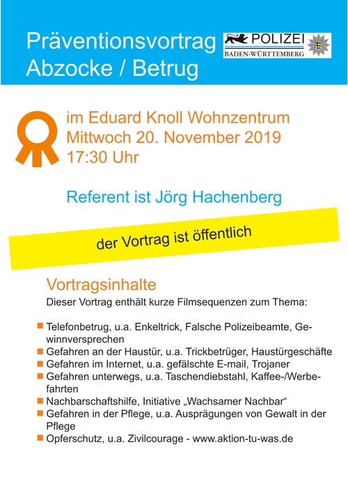 Präventionsvortrag Abzocke/Betrug Zentrum